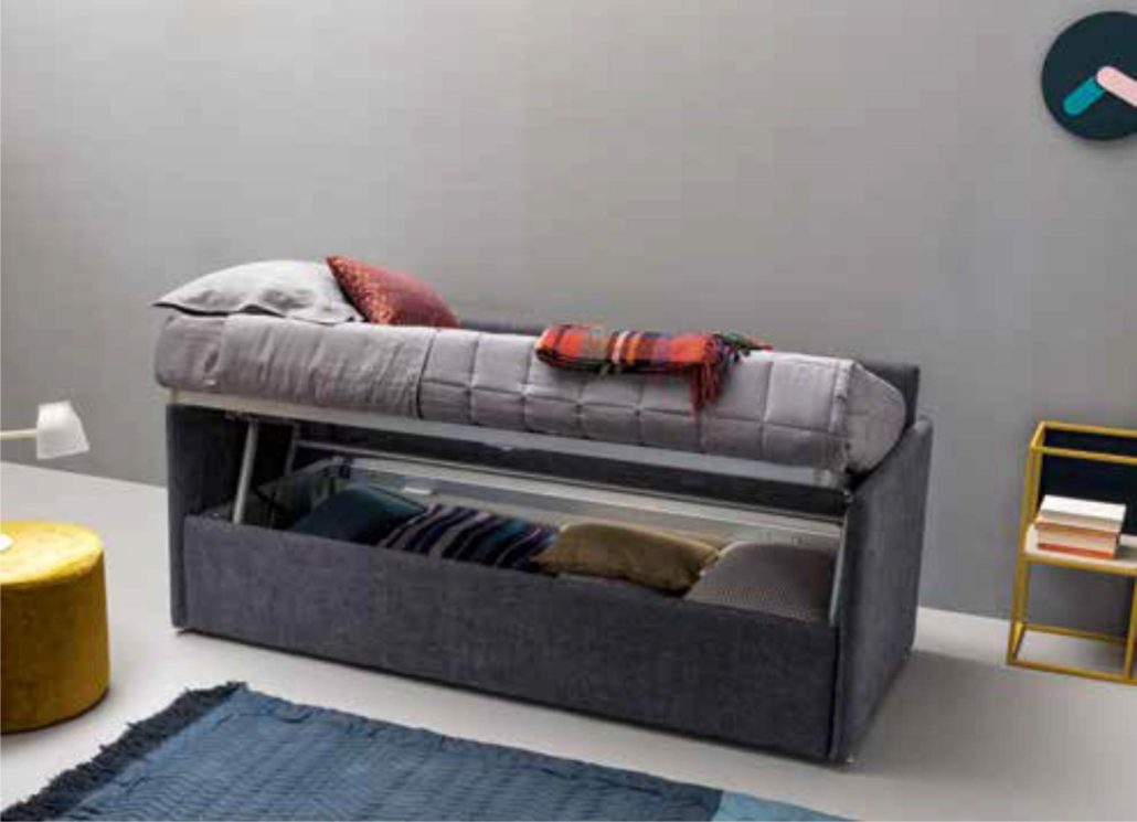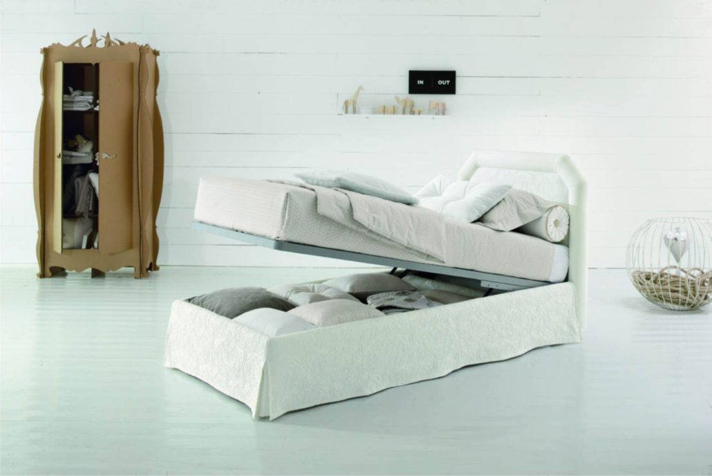 Il letto singolo in cameretta può avere funzione contenitiva in due modi: il sistema a cassetti e appunto il contenitore.