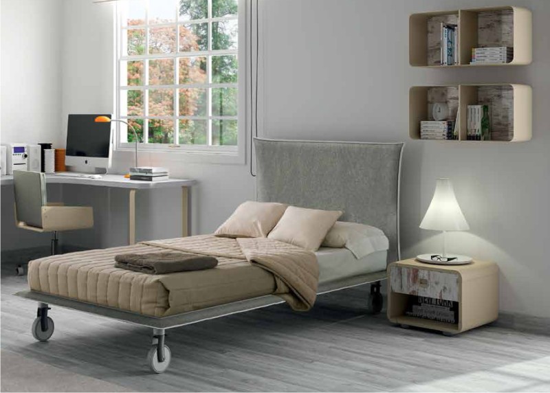 Doimo CityLine propone diversi letti su ruote ideali per la cameretta: diversi prodotti imbottiti ma anche in laminato e laccati con forme particolari e testiere uniche per portare nella cameretta qualcosa di più che un letto ma un opera di design unica nel suo genere. Le ruote offrono dinamicità al letto e quindi si va ad arredare la stanza con un letto movibile in ogni momento. I prodotti DOIMO vantano ben 10 anni di garanzia.